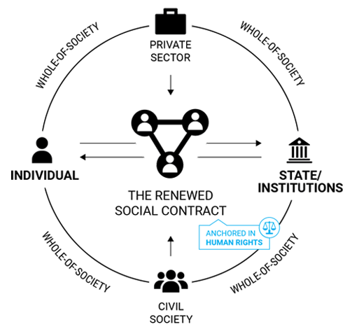 A renewal of the social contract, anchored in human rights, to rebuild trust and social cohesion